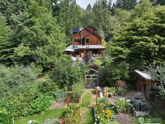 This quintessential Maxwelton Valley, one-owner home on 5.78 +/- acres adjacent to The Whidbey Institute's 106-acre conservation forest, with trails, is ready for its next steward. Perched on a sunny hilltop, at the end of a private road and surrounded by lush forest, gardens and mature landscape, this home was lovingly built and remodeled over the years with exquisite craftsmanship and a strong connection to nature. The woodworkmanship throughout this home is impeccable. Whether lounging on the cedar deck in the summer sunshine or cozying up inside on a crisp autumn evening, there is a deep sense of warmth that lives year-round with this one. Recent updates include a ductless heat pump & solar panels. Welcome to Whidbey! Welcome Home!