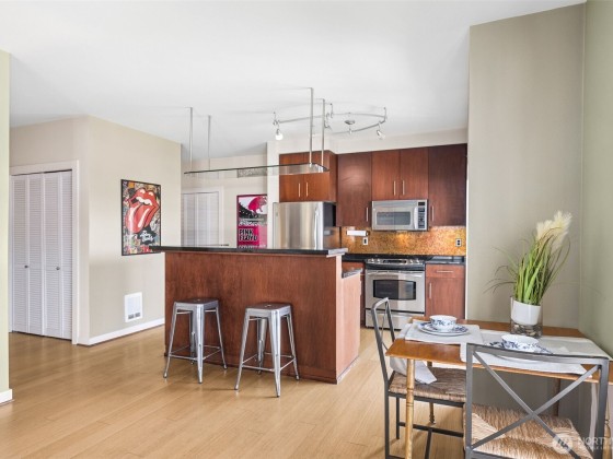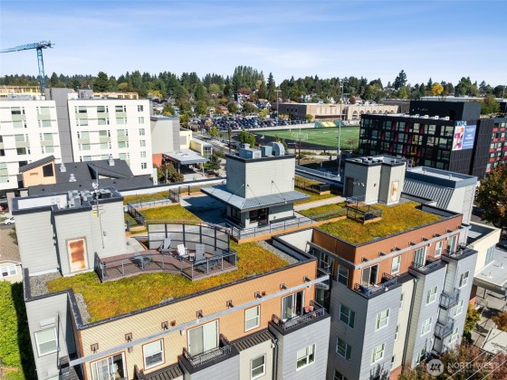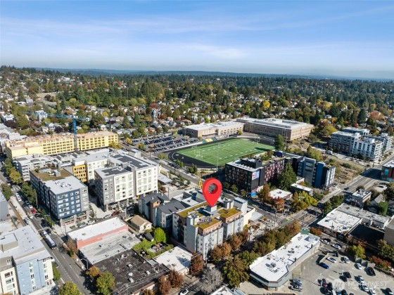Amazing one bed in city condo located directly next to the Roosevelt Link Light rail station and featuring so many cool things: end unit, private balcony, full bath, big bedroom, in unit Washer/Dryer, stainless steel appliances, great natural light from every window, big closets, hardwood floors, super private and quiet unit in an awesome building. DWELL is a newer building with a solid and well-funded HOA, security gates and access and features a roof top deck with city, lake and mountain views, lobby, a single space in the secure parking garage. Right in the heart of Roosevelt - across the street from Whole Foods, walking distance to cafes, restaurants, Green Lake. No rental cap makes this a great investment now or in the future!