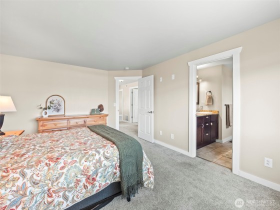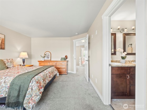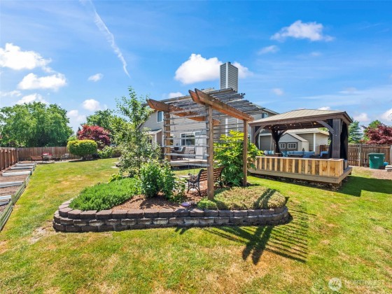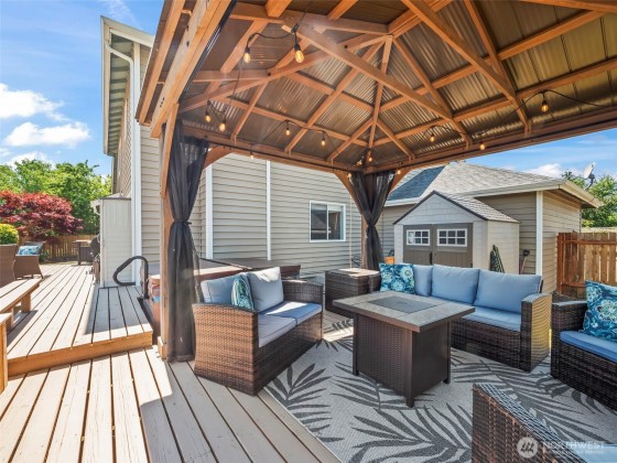 **Up to $5000 lender credit offered on qualifying loan to go towards a 1-year temporary rate buy-down, or other allowed closing costs if financed through seller approved lender!** Mt Rainier View from the Backyard! This stunning 4 bedroom home blends comfort and luxury. The main floor features a bedroom and 3/4 bathroom, ideal for guests or single-level living. Upstairs, there are 3 add’l bedrooms, including a primary suite with an ensuite bathroom. A large bonus room is perfect for a playroom, home office, or entertainment area. The backyard is an oasis with beautiful gardens, a large deck, hot tub, breathtaking Mt Rainier views, & direct trail access. This home is ideal for combining practical living with luxurious touches.