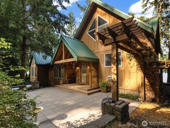 Once in a lifetime opportunity to own the FIRST EVER marketed custom luxury retreat on Silcox Island, the jewel of American lake w/stunning expansive lake views in front & private forest trails in back. Soaring floor to ceiling windows offer treehouse vistas, 87 ft of lakefront on shy half acre, multiple patios, rooftop deck, hot tub, firepit and fantasy play fort. Primary suite boasts 5 piece bath, WIC, Jacuzzi view tub & front row seat to spectacular sunrises. Hop in your boat at gated private SI marina, & within minutes you arrive at your own dock, surrounded by peaceful seclusion, in your unique getaway. No need to worry about parking and access! Includes deeded ownership of 2 moorage slips, plus 5+ car spaces and garage.