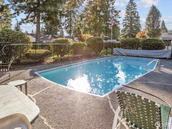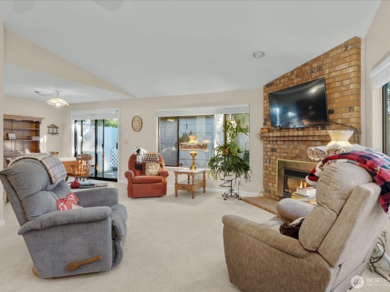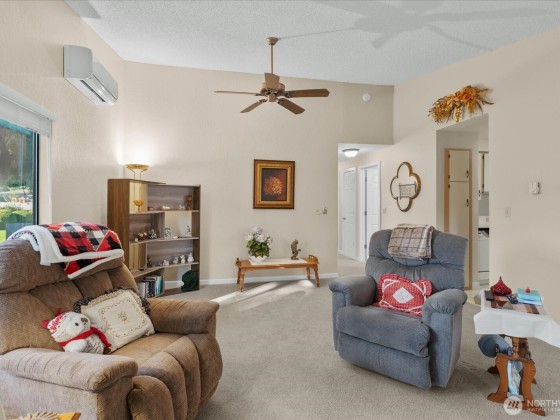 Welcome to the very desirable Wicklow Condominiums with a clubhouse and outdoor pool! This charming 2-bedroom end-unit rambler offers easy one-level living with no stairs. The spacious living room features vaulted ceilings, a gas/propane heating fireplace, and plenty of natural light. The open dining area flows to a private back patio with a storage shed—perfect for relaxing or entertaining. The large primary suite includes a walk-in closet and private ¾ bath. Recent mini-split adds year-round comfort. Includes a 1-car garage, 2 parking spots, and convenient access to shopping and freeways.