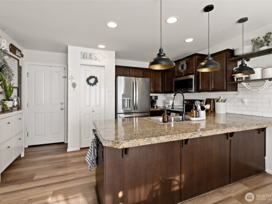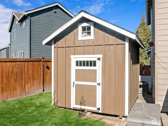 This Brookfield resale is exactly what you've been looking for! One owner, whose pride in ownership really shows. Open concept Kitchen/dining/living. New Stainless Steel appliances & updated laminate flooring downstairs. Good-sized den/office perfect for working from home. Upstairs, you will find all 4 bedrooms, 2 full bathrooms & the laundry room for your convenience. Newer tankless hot water heater. Privacy trees out back make the yard that much more enjoyable. Two storage sheds have all your seasonal and gardening storage needs covered. No hot summers here, the AC is a game-changer. Enjoy the park and basketball hoop. Puyallup schools, and an easy drive to JBLM. Come take a look before it's too late, this one won't last!
