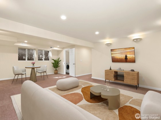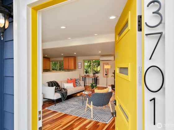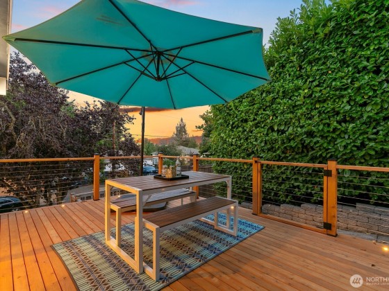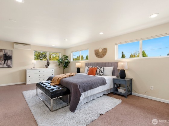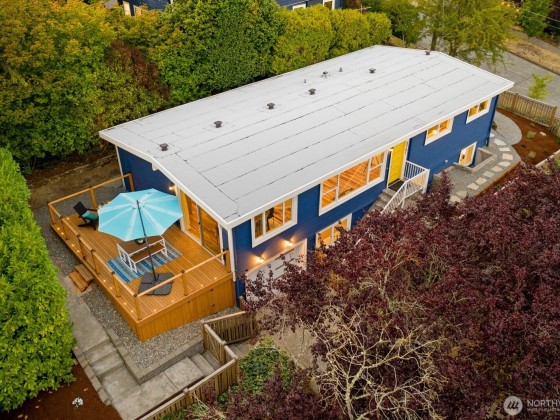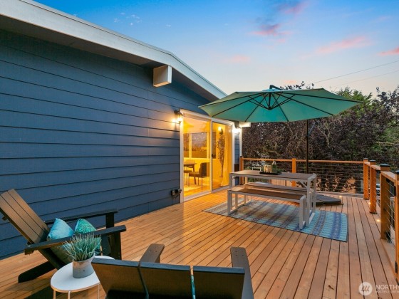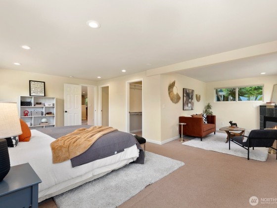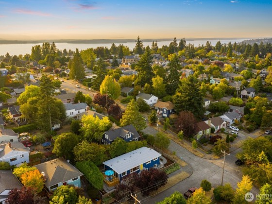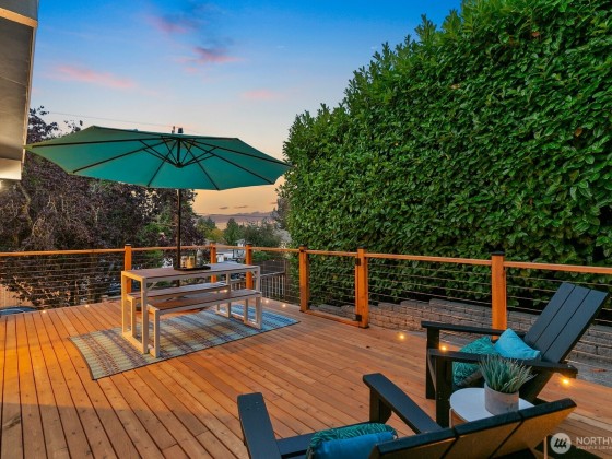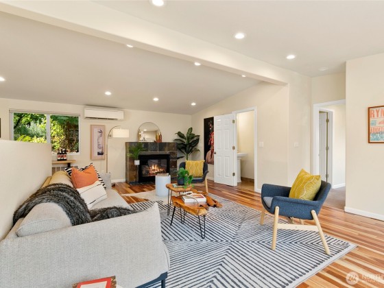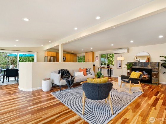 Newly refinished walnut hardwood floors welcome you into this Gatewood gem. Expansive, centerpiece great room combines living, dining, a gas fireplace, half-bath, and chef's kitchen under a vaulted ceiling. This flows to a large deck for morning coffee under the sunshade and inset lighting for evening entertaining. Massive primary suite feels like a small condo, with private sitting room, gas fireplace, walk-in-closet, and ensuite bath. Upstairs Ductless AC/Heat for year-round comfort. Downstairs naturally stays cool in the summer, housing three bedrooms, full bath, laundry room, and a giant activity room or potential home theater. One-car garage with additional storage. Easy access to Lincoln Park, arterials, and select corporate shuttles.