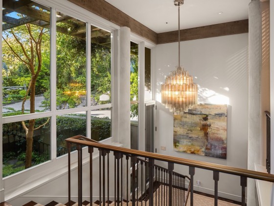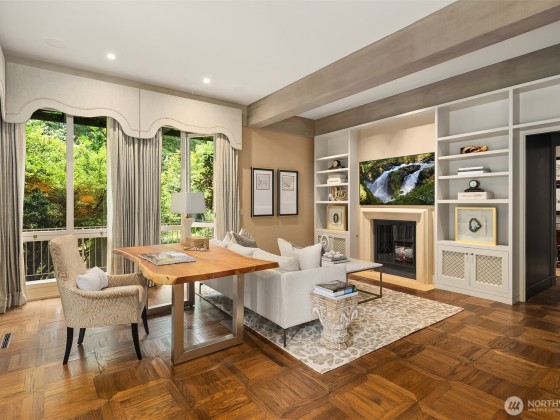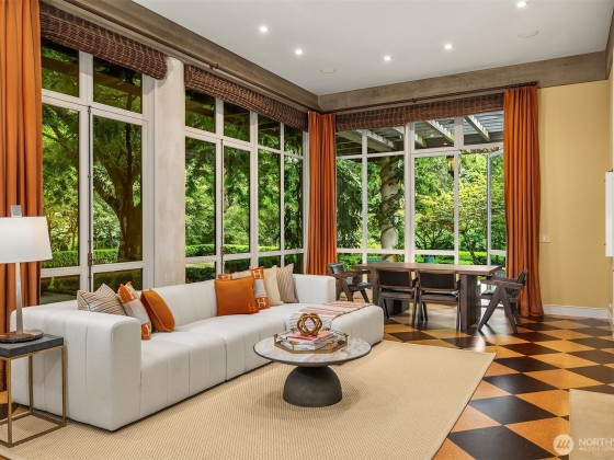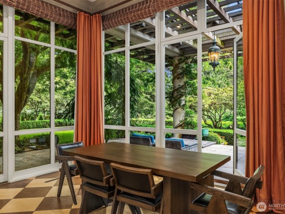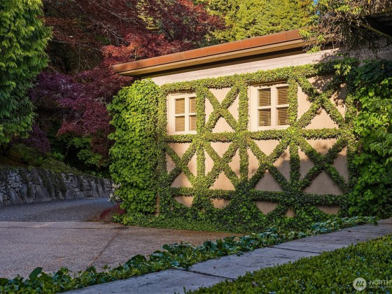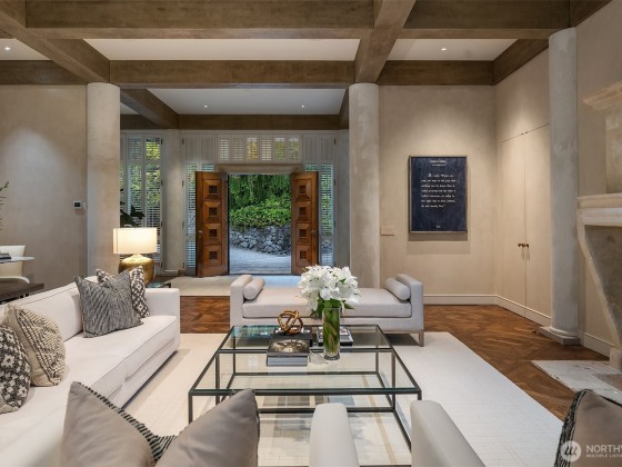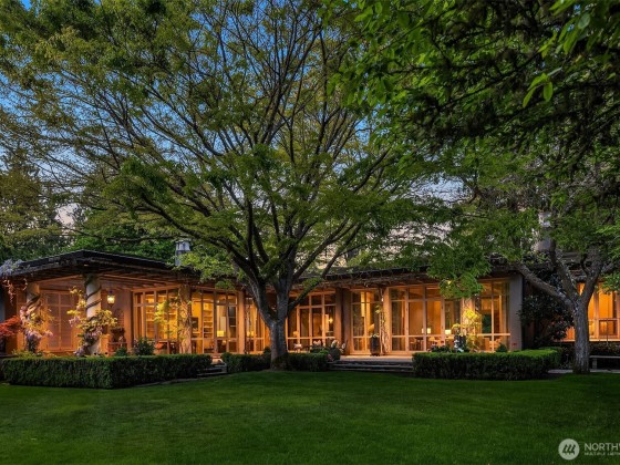 Rare architectural Estate on 3.67 acres. The Roland Terry masterpiece, built by Schultz Miller, is a Contemporary Villa of sophistication & scale. Timeless NW modernism w beamed ceilings, Venetian plaster walls, imported walnut doors & floor-to-ceiling windows create a sense of quiet grandeur. The grand kitchen/gathering room, perfect for everyday living w secondary kitchen. Dining room w hand-painted walls. Light-filled bedrooms w private terraces. Primary features fireplace, vast dressing room & dual baths. Paneled media room, rec room, guest suite, soundproof climate-controlled office, sauna, custom vault & wine cellar. Lush gardens by acclaimed designer Penelope Hobhouse create a truly artful estate. 6-car garage, orchard & keepers shop