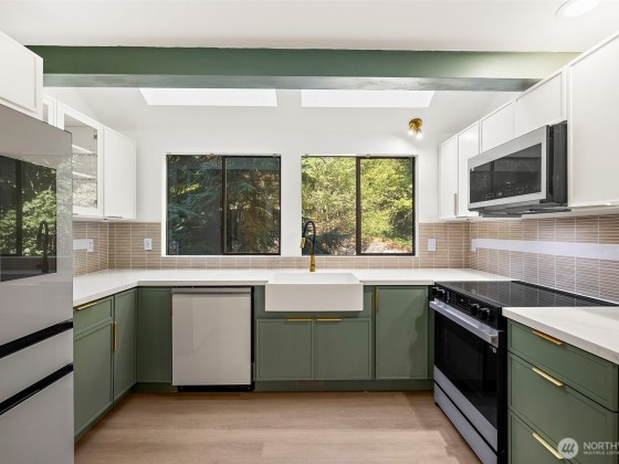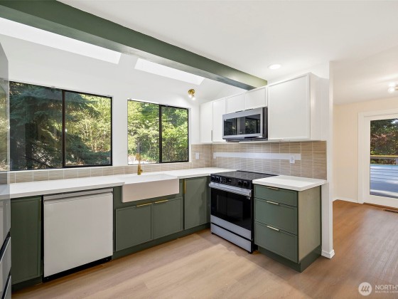 Welcome to this secluded 3 - bedroom, 1.5 bath home on a spacious .31-acre lot with a 2-car garage and plenty of parking for all your toys. Featuring a brand-new kitchen and bath with modern finishes, new kitchen appliances, and fresh interior paint throughout. Enjoy new flooring, an updated living room with a cozy wood burning fireplace, and a brand new deck for outdoor entertaining. Expanded pavers add curb appeal and the home offers easy access to 405, plus nearby shops, restaurants, and NORTHSHORE schools. Move-In Ready!