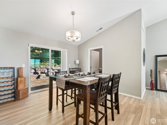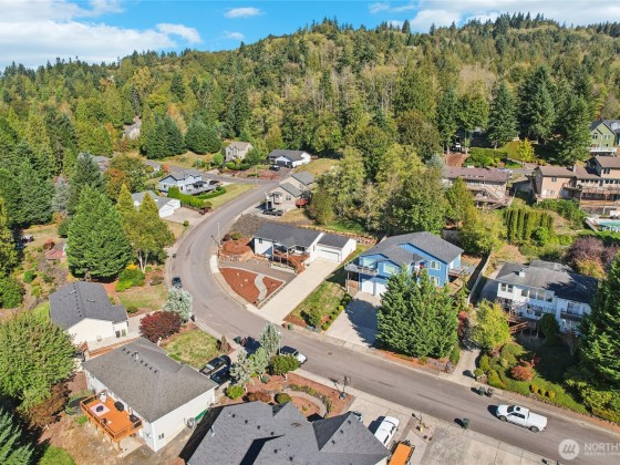 Nestled in the hills, this single-level home captures serene river views & breathtaking evening skies. A welcoming covered deck sets the stage for enjoying the beauty of the Pacific Northwest. Inside, calming finishes, vaulted ceilings, & expansive windows fill the home with natural light, showcasing sweeping territorial views. The sleek kitchen offers abundant cabinet & counter space, SS appliances & convenient eat-up bar. LVP flooring flows seamlessly throughout, tying each space together. Outside boasts parking for 10 vehicles, a leveled 2nd driveway for added convenience, & professional landscaping with hundreds of new plantings that will soon create both privacy & elegance. Functional design offering easy entry from garage to main.