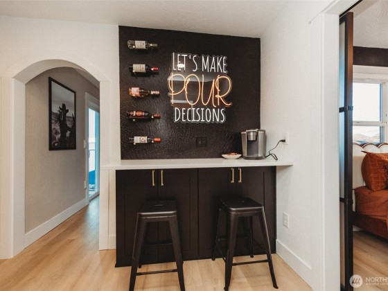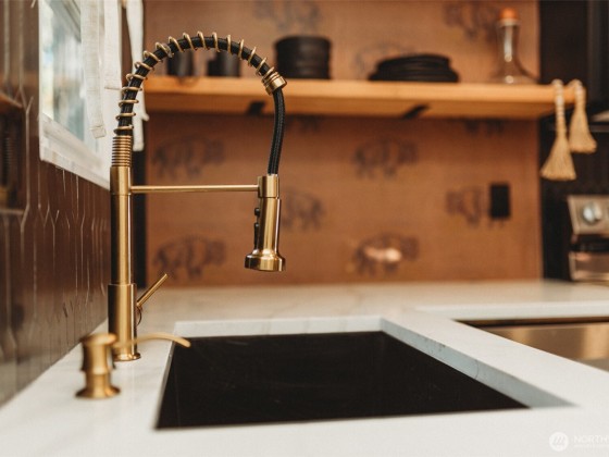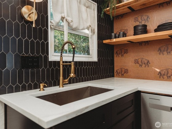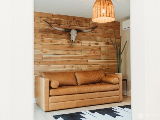 A Western sanctuary infused with the spirit of the land and fierce vibes - rustic, soulful, and undeniably timeless. This is no Wild West - everything is designed with luxury and comfort; planked floors, ship lapped cedar accent wall, quartz counters, vessel sinks, stainless appliances, craftsman trim, custom wallpaper, live edge shelves, gold fixtures, too many details to list. The layout creates a larger feeling, with decks on both sides, living room that flows to the kitchen, coffee/wine bar, bathroom, and bedroom. New roof, paint, insulation, plumbing, electrical, and sewer line too! Experience sunsets and open skies over the Straits, laughter across the street at the school, and a simple lifestyle inspired by the beauty of the West.
