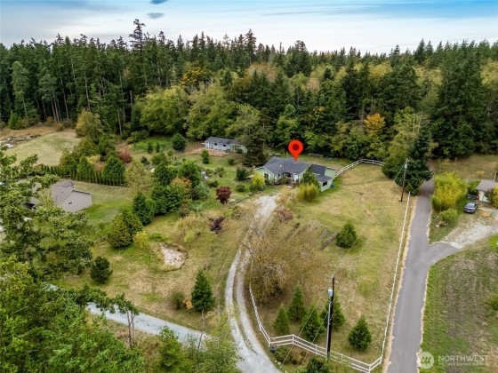 This single-story charmer sits secluded on a serene 1.83 acres and offers the perfect combination of peaceful island living & garden farm. The 1400ft 2bed/1bath floorplan is spaciously laid out with plenty of natural light, room to entertain, and a dedicated laundry. Enjoy the Golden Glow of sunrise, all day fresh air & relax at sunset surrounded by nature. Brimming with potential, this property invites you to create your dream! Two(2) outbuildings, each with 2 equestrian/livestock stalls - barn/shop/storage/future ADU; choices abound. Exclusive Community Membership provides you private gated beach rights to Lowell Point Community Beach & access to the State park walking trails.