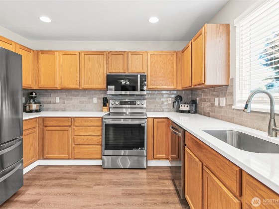 Welcome to Maple Valley living at its best! This rare 5-bedroom, 2.5-bath home offers the perfect blend of comfort, convenience, & charm in a vibrant, well-landscaped neighborhood with no HOA dues. The efficient layout features an open kitchen/family area, a gas fireplace, and a spacious, work from home, main floor den. Relax on the country porch or entertain on the patio and fenced backyard. With AC to keep you cool and the fresh updates of new paint, flooring, stainless appliances, and a newer 2021 roof, this one owner home is built for memories and move in ready. You’ll love where you live with easy access to parks, lakes, trails, dining, shopping, and top-rated Tahoma schools. Hurry, this home delivers the lifestyle you’ve been seeking.