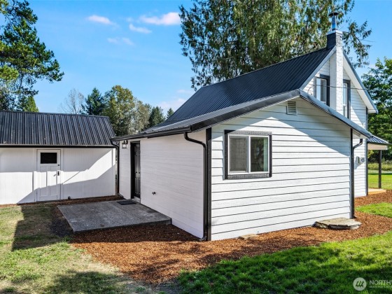 Fully remodeled 1906 farmhouse on 4.8 acres just minutes from Tumwater and easy i-5 access! This timeless home blends historic charm with modern comfort; featuring new siding, metal roof, flooring, kitchen, bath, and other systems throughout. Main floor primary bedroom with private bath and spacious closet. Cozy freestanding gas stove, bright open layout, and covered front porch. Level pastureland offers space for gardens, animals, or future expansion. Detached shop adds for storage & workspace. 1979 Single wide mobile home is used for storage, has title and separate power & septic too. Enjoy peaceful country living with easy I-5 access and all city conveniences nearby. Move-in ready and picture-perfect!