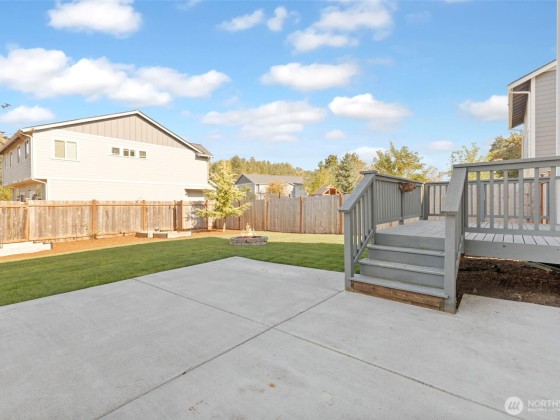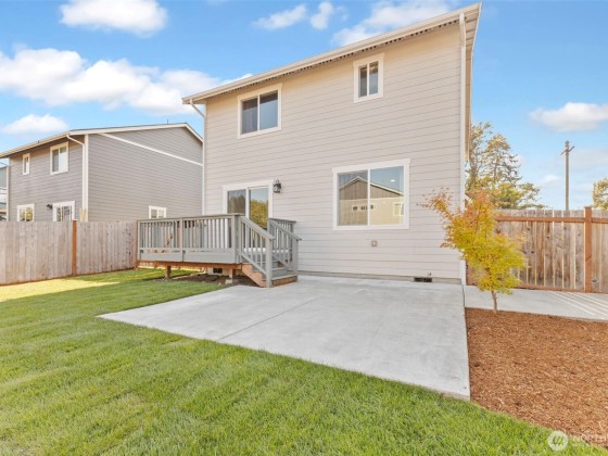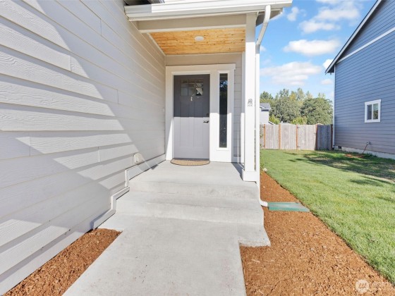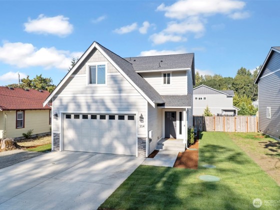 Immaculate 4-bedroom home in a peaceful neighborhood! Built in 2020, this home features cement plank siding and an efficient heat pump with air conditioning. Inside, LVP flooring, tall ceilings, and large windows create a bright, open feel. The kitchen offers white shaker cabinets, stainless steel appliances, and a large island. Upstairs, all four bedrooms, including a primary suite with dual sinks and partial mountain views, provide comfort and space. The front and back yards were completely redone with professional landscaping. The back yard offers a concrete patio, fire pit, and raised garden beds. No HOA and easy access to Yelm City Park, theater, and town amenities!