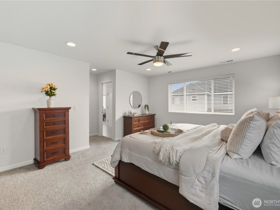Welcome to Overlook at Riverfront, a picturesque community with an upcoming town center in walking distance and a bright future for lifestyle and home equity. This spacious 5 bed + bonus room home sits on a corner lot and includes solar panels, tankless hot water, gas fireplace, and faux wood blinds throughout. The kitchen offers granite counters, a large island, full backsplash, gas cooking, walk-in pantry, flex zone fridge, and upgraded hood vent. Fully fenced low maintenance yard, two primary suites (one on the main floor) and nearby river trails where you can see seals, otters, and eagles. Close to I5, HWY 2, and future light rail stop. Inspection available!