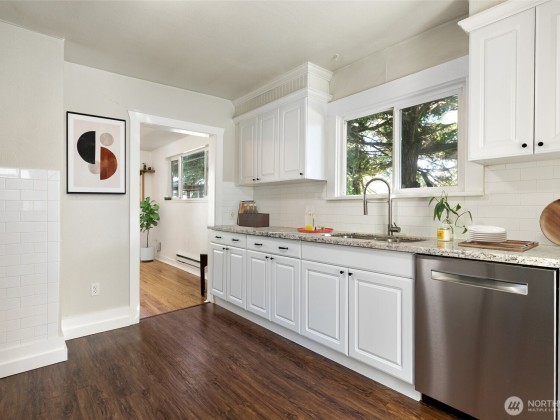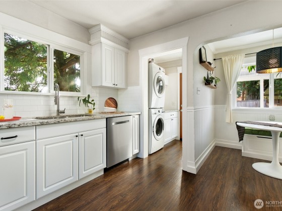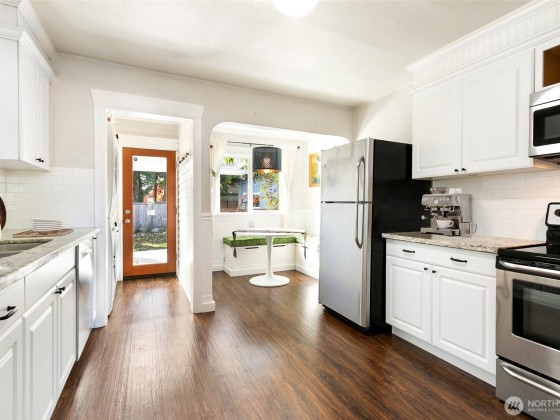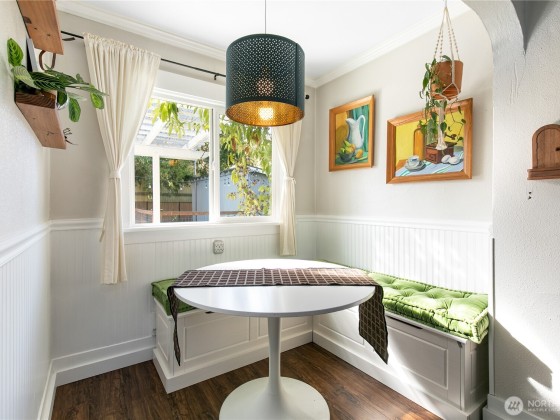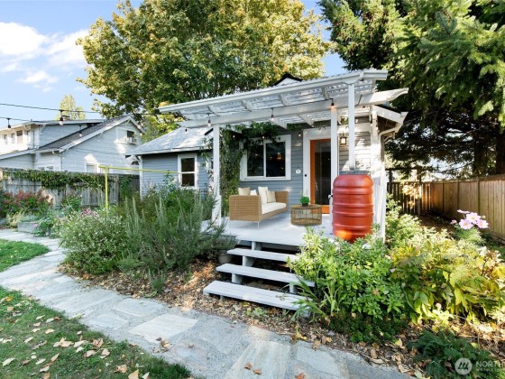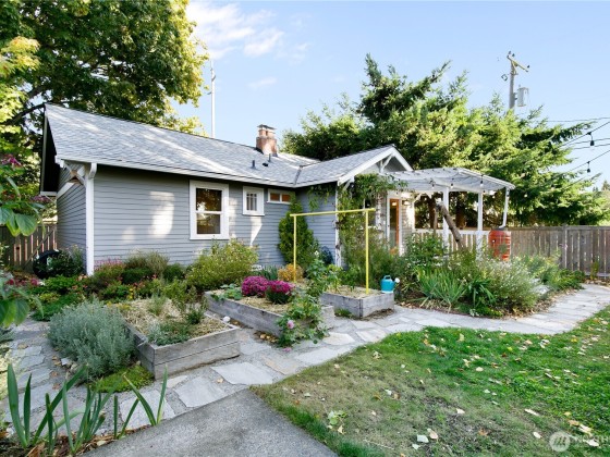 Nestled in the heart of North Tacoma, this storybook home is brimming with charm and thoughtful detail. Impeccably remodeled, it features a light and bright kitchen that opens to a cozy custom dining nook—perfect for morning coffee or intimate dinners. A beautifully updated bathroom and modern touches throughout blend comfort with timeless style. The fully fenced, oversized lot is a gardener’s dream with lush blooms, pathways, and inviting outdoor spaces. With a detached garage, new roof, and enchanting curb appeal, this 2-bed, 1-bath gem offers the ideal mix of character and convenience. Mortgage savings may be available for buyers of this listing.