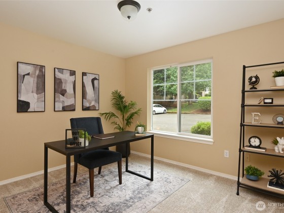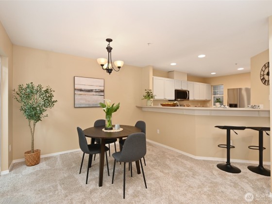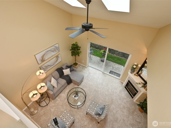 Live the Silver Lake lifestyle in this spacious end-unit condominium 1 block from the lake! This 3 bedroom, 2.5 bath home offers over 1,500 sq ft of light-filled living with vaulted ceilings, skylights, a cozy gas fireplace, and an open main floor. Enjoy new SS appliances, new flooring, fresh paint, an eat-in kitchen bar, dining area, and bonus den/office perfect for remote work. Upstairs features a roomy primary w/ensuite, a full guest bath with new vanity, plus 2 additional bedrooms. Private patio, laundry area with brand new W/D, and RARE 2-car garage with 2 extra parking spots (4 total!). Close to parks, trails, Mill Creek T.C., transit, and easy I-5 access. Move-in ready for you!