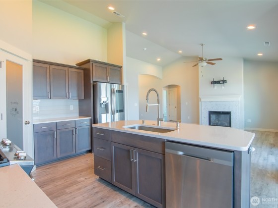 Experience peaceful living with breathtaking views & year round sunsets on 3 plus acres w/Lake access. This 3 bdrm/2 bath well appointed home offers modern amenities, ample space and the perfect blend of nature. A welcoming entry invites you in. Vaulted ceilings in the kitchen, den & living areas. Large kitchen island w/undermount sink, under cabinet lighting, Huntwood soft close cabinets, pantry and Quartz countertops throughout. Stainless steel appliances including propane stove & Samsung smart fridge w/touchscreen. Dining nook w/Lake views. Primary en-suite with walk in closet, luxurious bathroom, double sinks, soft close cabinets, oversized aromatherapy shower. Electrical conduit in place for future shops. So much more!
