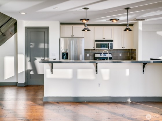 Leisure + luxury, nightlife & fun are all just outside your door when you own this Modern City Penthouse! Thea's Landing provides an exceptional urban lifestyle, spectacular views & amenities. This Top floor, 2-story condo enjoys views of Mt. Rainier + Thea Foss Waterway from all main living areas & the 2nd floor loft. Neighbors with the iconic Tacoma Glass museum, Union Station & dozens of local businesses & eateries - there's never a lack of things to do! Inside, remote operated blinds on all windows, upgraded cooling (2022), concrete countertops in the kitchen & tender care throughout. 2 parking spots + storage options; satisfaction of style, space & simplicity are here. Gym, community center, sauna and more. You can have it all, here.