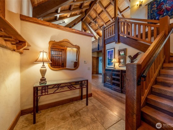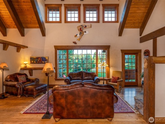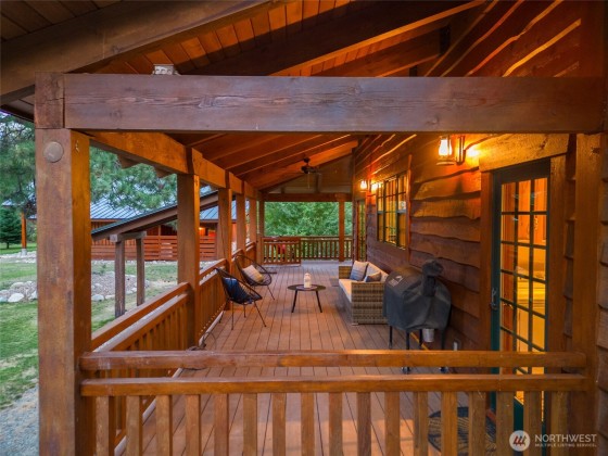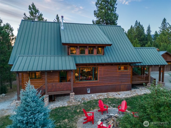 Set on 5.24 acres of pristine natural beauty, this handcrafted 3,700+ sq ft mountain retreat offers 3 bedrooms, 2.5 baths, and three thoughtfully designed levels for comfort, connection, and retreat. Soaring timber-framed ceilings, a chef’s kitchen perfect for gatherings, and a peaceful main-level primary suite set the tone. Custom Douglas Fir trim and Venetian plaster walls bring warmth and character throughout. Enjoy slow mornings on the 800+ sq ft wraparound porch or soak under the stars in the private hot tub. A detached garage with an insulated shop provides space for gear, hobbies, or creative projects. With TWO legal parcels, this refined homestead is also a rare investment opportunity. See MLS# 237064 for single lot offering.