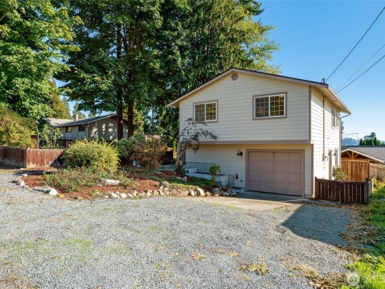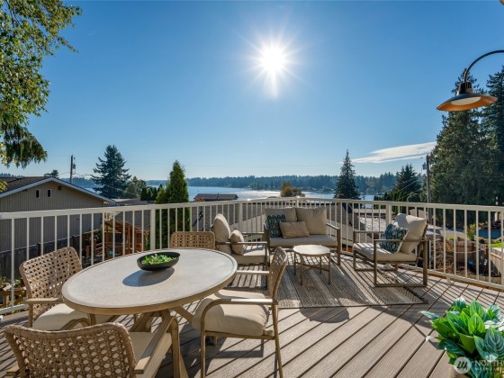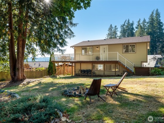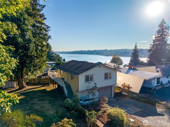 Lake life and the living is easy in this 2 bed, 1 bath lake view home! Recently refreshed, enjoy a brand new composite deck overlooking the lake, newer stainless appliances, easy care LVP flooring & updated exterior lighting. Everything you need is on the main floor, while downstairs features a spacious multipurpose area, ideal for office, gym, or game room. The etched glass staircase lends a touch of gorgeous PNW nature, perfectly suited to this lakeside oasis. Conveniently located in a small subdivision w/ exclusive amenities, enjoy a private boat launch, dock access, gazebo by reservation, beach volleyball court & community fire pit. Ready for your own slice of coveted lakeside paradise? This one is the perfect mix of lake style & value!