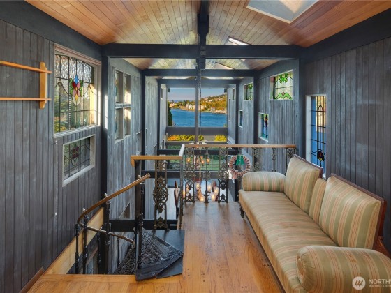 Commanding water views and endless opportunity come together in one of Magnolia’s rare large lots. Overlooking Shilshole Bay, watch boats, tides, and wildlife in the canal or stroll across the Ballard Locks. Distinctive details of this gothic, mid-century home include wood ceilings, spiral staircases, stained glass, skylights, and a grand sunroom opening to a poolside patio. A four-car attached garage, secondary garage, and dual driveways provide exceptional storage and flexibility. Set on a remarkable 18,600 sq ft lot, this historic residence stands poised for its next evolution. Whether you preserve its character, reimagine with modern updates, or create something new under NR2 zoning, this property is a rare canvas of possibility.