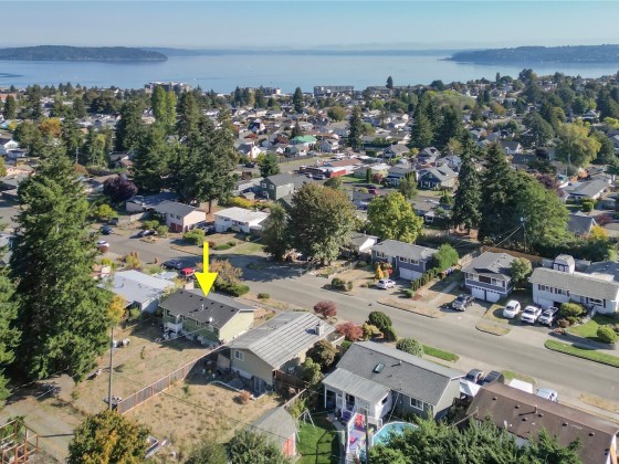 North End Rambler w/full basement awaits your inspirational touch inside & out, from the wonderful fireplaces to the nicely laid out kitchen. Livingroom picture window offers a peak-a-boo view of Commencement bay. Laminate flooring through-out main living areas & bedrooms. Kitchen & baths have ceramic tiled floors. Downstairs, family room & large third bedroom room, could be split into 2 rooms, awaits. Entire yard is a blank slate, plenty of space for garden, party deck, patio etc.. A Must see home, move in while you add your personal stamp. Driveway w/room for 2 plus cars or RV. Not far from Point Defiance and all the area has to offer along with easy jaunt to Gig Harbor. Items replaced w/i 5yrs: side-sewer, roof, flooring & waterheater.