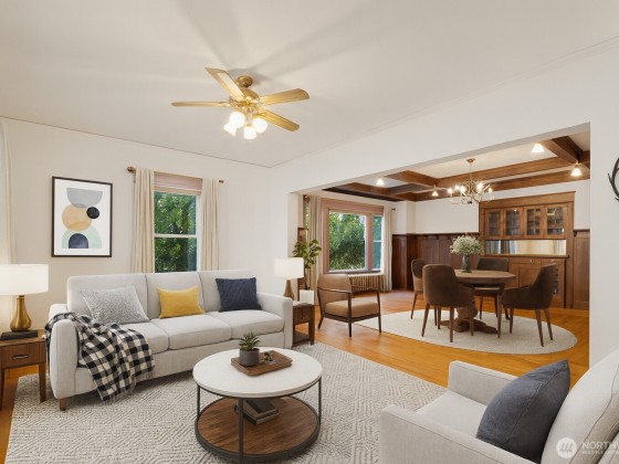 Discover the charm of this 1915 Ballard classic, offering 4 bedrooms, 2 baths, and nearly 2,800 sq ft of living space. Tucked on a 5,100 sq ft lot, this home blends historic character—original hardwoods, built-ins, and radiator heating with modern upgrades, including updated plumbing, electrical, and a new sewer line. The inviting front porch and mature landscaping add timeless appeal, while the private backyard creates a peaceful retreat. A spacious layout and unfinished basement with finishing potential provide endless opportunities. Ideally located near Ballard’s vibrant shops, eateries, and parks, this is a rare chance to restore and reimagine a turn-of-the-century gem.