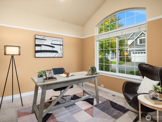 Welcome to Norris Estates, where timeless craftsmanship meets modern comfort. This 4 bed, 2.5 bath home features a desirable main-floor primary suite privately tucked with spa-inspired bath and walk-in closet. The light-filled great room opens to a serene greenbelt, while soaring ceilings, wainscoting, and detailed trim elevate every space. The island kitchen boasts granite counters, stainless appliances, and a walk-in pantry. Upstairs hosts 3 bedrooms, full bath, a spacious entertainment room, and a hidden room ideal for hobbies or storage. Central vac plumbing, sprinklers, and a 3-car garage add ease. Walking distance to Beaver Lake, Park & Ride, I-90, award-winning Issaquah Schools, and the community tennis court!