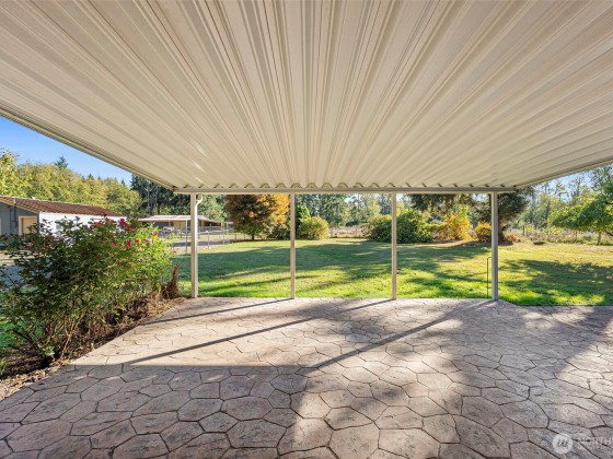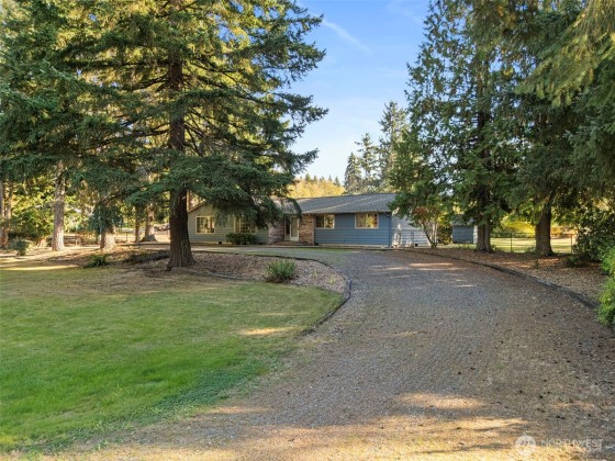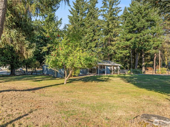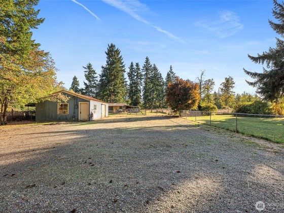 Your hobby farm awaits, on 2.46, flat acres, fenced in garden space & pasture, hayloft (w/power) w/enclosed storage in the back, detached garage/shop w/lien-to, once was a quaint 640 sq ft home , own electrical panel=power. A beautiful 628 sg ft covered tile patio (hot tub ready), new roof, newer electrical panel, water/power/RV hookups. Heat pump & wood stove to keep you warm on cold evenings w/AC for the hot summer days. Primary w/slider to breath fresh air. Fruit & mature trees & low maintenance landscaping, pull through drive, room for so much parking. This home was the home to be at, music stages have been on the property to host the most wonderful events. Now it's time to pass this great home on. Wired for generator/generator stays.