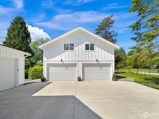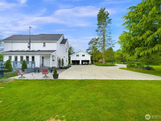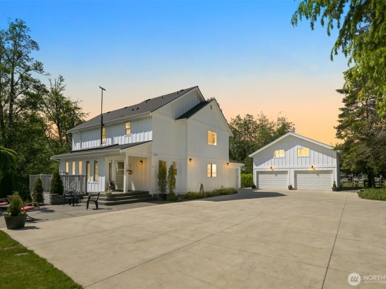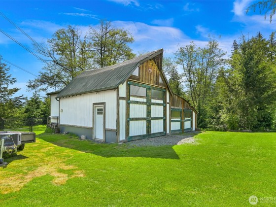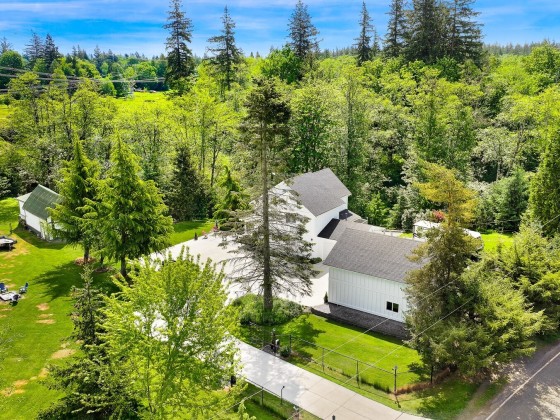 You know that property you've been looking for? The one w/ acreage, shop, barn, RV hookups, + MIL suite? Well it's finally here. Stately black iron fence w/ power gate surrounds the flat, sunny lot feat charming home w/ attached garage, 2-bay shop w/ giant loft, classic barn, and RV pad w/ septic + power. Huge windows + vaulted ceilings bathe main level in daylight, incl a beautiful kitchen w/ granite + SS appliances, open living room, dining area, large bedroom, + full bath. Upstairs is a spacious en-suite loft w/ sauna, full bath, + walk-in closet. Lower level is MIL-ready + primed for additional income w/ private entrance, 2 beds, full bath, living room, + full kitchen. All this with Dakota Creek trickling serenely through the property!