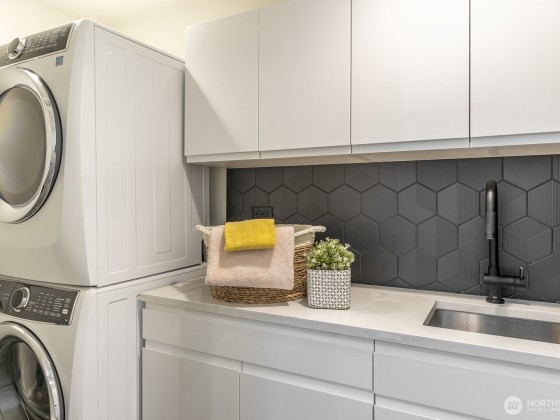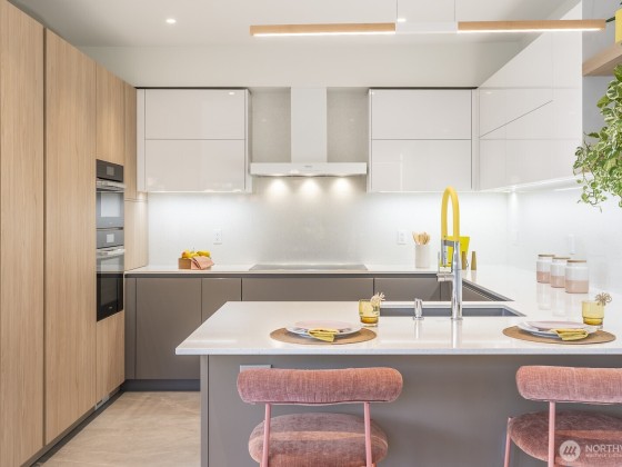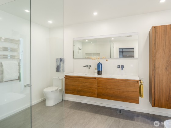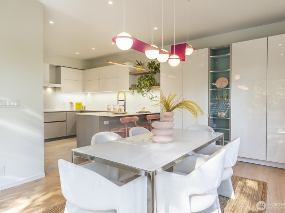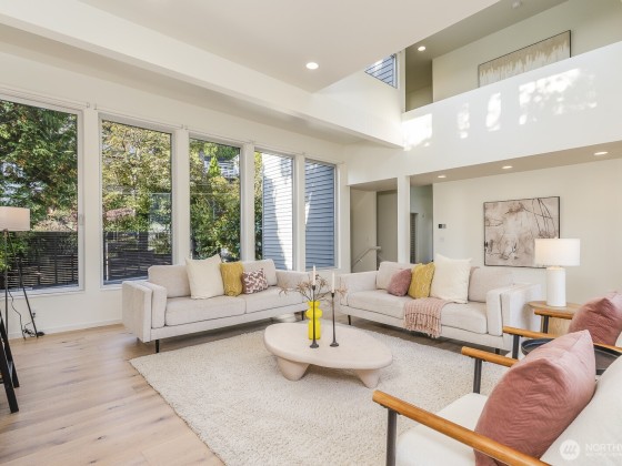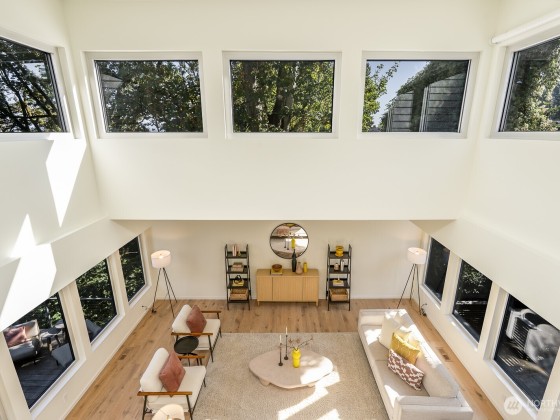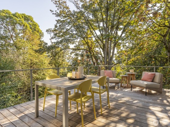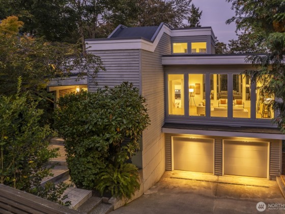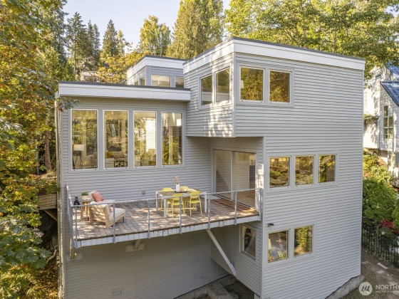 Modern design framed by nature. Fully renovated with $1M+ in thoughtful updates, this light-filled contemporary is a masterclass in Euro-inspired craftsmanship and calm. Walls of glass and soaring ceilings frame treetop and lake views that feel worlds away. A dramatic cantilevered Ipe deck floats above the ravine, offering rare privacy and serenity with lush greenery and Lake WA beyond. Exquisite kitchen pairs Miele & Thermador appliances, induction cooktop, built-ins & refined cabinetry. Top-floor primary captures sunrise light & lake views, w/spa-worthy bath & dreamy walk-in. Plus 2-car garage, EV, AC heat pump, tankless H2O, fresh paint & new carpet. Near lake, parks & Madrona’s beloved shops, plus quick access to downtown, I-90 & 520.
