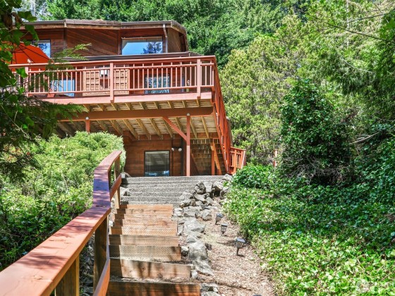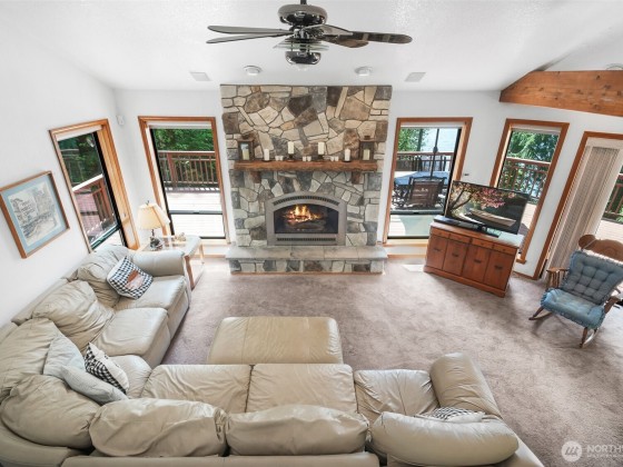 Cozy Lakeside Escape! Take in breathtaking Lake Cushman views from this inviting two-story waterview cabin. A 1,000 sq. ft. wraparound deck creates the perfect setting for morning coffee, summer BBQs, or quiet evenings under the evergreens. Inside, the bright, open living room is filled with natural light and thoughtful updates. Upstairs offers two comfortable bedrooms, a spacious bonus room, and a primary bath with a relaxing soaking tub. The finished basement provides flexible space for a game room, media lounge, or guest retreat. Outside, unwind in the six-person hot tub or gather around the fire pit. Offered fully furnished, with a 72-year Matvey Foundation and concrete patio warranty.
