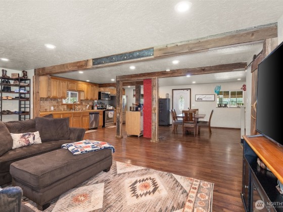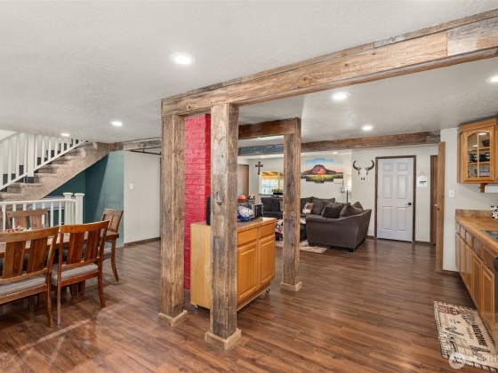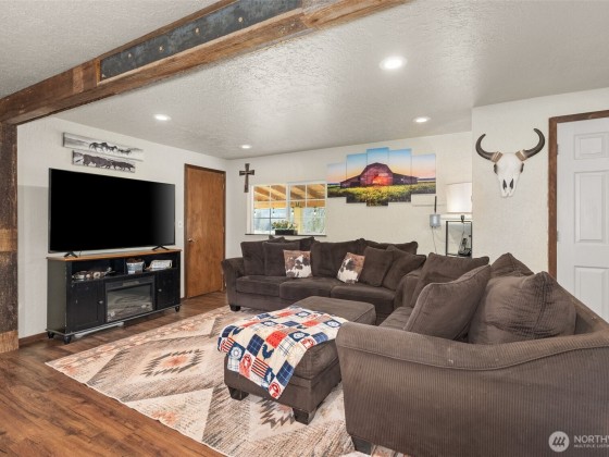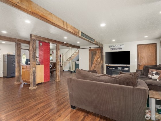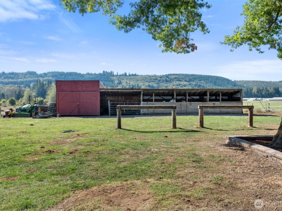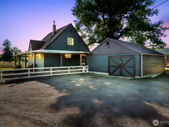 Don’t miss this charming farmhouse on nearly 5 acres, blending comfort, function, and country living. Offering 2,072 sq. ft. of open-concept space, the main level features inviting living areas and a fully finished basement with 2 bedrooms and a bonus room—perfect for guests or hobbies. The entire upper level is a spacious primary suite, creating a private retreat. Recent updates include a new roof, a ductless heat pump with A/C, a new water heater, a 3-bedroom septic system in 2022, and brand new exterior paint. Enjoy the wrap-around covered porch, patio, 4-stall barn with hay shed, cross-fenced pastures, outdoor arena, and shop—plenty of space for animals, projects, and all your toys. Peaceful country setting with lots of room to grow.