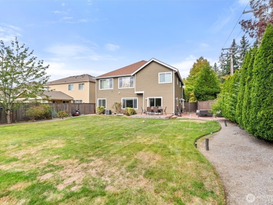 Welcome to this stunning Canyon Park home! The main floor showcases formal living and dining room with elegant coffered ceilings, an updated chef’s kitchen with quartz counters, gas cooktop, double ovens, and a large island, plus a sunlit family room, ¾ bath, and versatile den/office. Upstairs offers four bedrooms, including a spacious primary suite with ensuite and walk-in closet, and a secondary bedroom with its own updated private ¾ bath, along with another beautifully updated ¾ bath. The third floor provides a generous media or playroom—perfect for entertainment or relaxation. Outside, enjoy the stamped patio, fenced yard, fresh exterior paint, and updated furnace, water tank, and heat pump.move-in ready!
