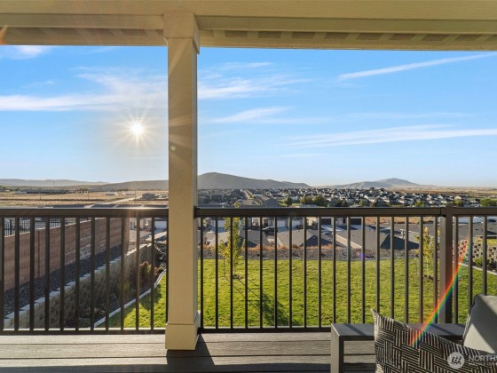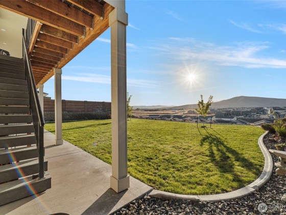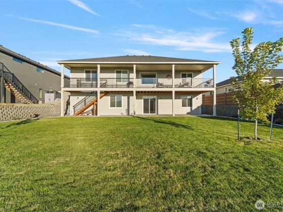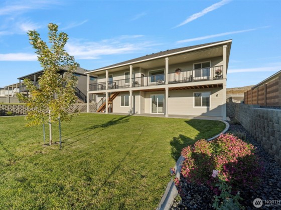 Stunning 2022 daylight basement home in desirable West Richland! Over 3,500 sq ft of like-new living space designed for multi-generational living or rental income. This 5-bedroom, 4-bath home features dual primary suites—each with its own laundry, kitchen space, and private entrance for independent living on both levels. The main level offers an open-concept kitchen with quartz countertops, soft-close cabinetry, stainless-steel appliances, gas range, and pantry. Great room with floor-to-ceiling stone fireplace and custom built-ins. The lower level includes a kitchenette, theatre room, full bath, and private access—ideal for guests or tenants. Enjoy views from the composite deck, landscaped yard, and stunning Red Mountain sunsets.
