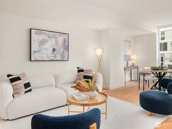 $7,500 BUYER BONUS! Perched above the city with views of downtown from your private terrace, this stunning residence at The Emerald seamlessly combines modern elegance with indoor-outdoor living. Thoughtfully designed, it features two enclosed bedrooms, floor-to-ceiling windows, custom cabinetry & hardwood floors, delivering the ultimate in refined urban living. Located one block from Pike Place Market and two blocks from Seattle’s waterfront. Enjoy resort-style amenities, including a fitness center, yoga studio, pet run and spa, guest suite, and a full-floor rooftop lounge—offering protected views of Elliott Bay, the Olympic Mountains, and the Space Needle. Like a jewel in the downtown skyline. The Emerald is a coveted piece of Seattle.