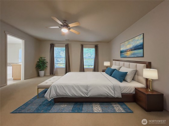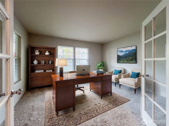 Discover this desirable move-in ready home nestled on Snoqualmie Ridge. Located on a peaceful cul-de-sac, this home offers proximity to parks, trails, and shopping. It features 5 generous bedrooms, each with walk-in closets and ample storage space. One of the bedrooms is conveniently located on the main floor. The home also boasts a den with elegant French doors near the entry, and an additional family room/loft upstairs complete with a cozy second fireplace. Step outside to enjoy the backyard and patio that backs onto a serene greenbelt. Come and explore the charm and convenience this home has to offer!