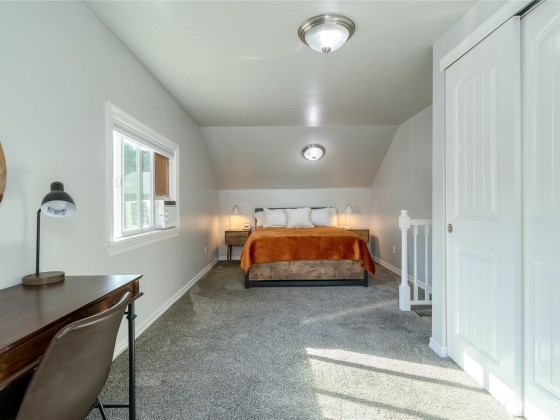 Beautifully remodeled condo with two fully furnished 1-bedroom units, each with a private entrance. Both upstairs and downstairs units feature updated kitchens with stainless steel appliances, newer countertops, laminate flooring, fresh carpet, and stylish floor-to-ceiling tile showers. Each unit has efficient mini-split heating and cooling and a shared laundry room. Currently rented through Furnished Finder at $1,200/month per unit with a strong waitlist. $175/month HOA covers exterior and parking lot maintenance plus access to a private park with a creek. Ideal for investment or live in one unit and rent the other. Fully updated and move-in ready.