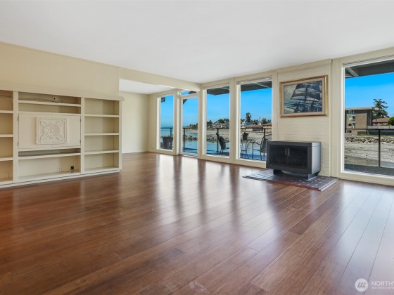 Live like you are on vacation every day at Harbor West! Experience a dreamy waterfront lifestyle with spectacular views & lapping waves! This one floor unit has a very functional floor plan with large rooms for efficient living. Formal living & dining rooms with wall of windows and access to the deck that stretches the length of the unit. The primary suite has a walk-in closet, en-suite bathroom and will fit your King bed! The second bedroom has a murphy bed so you can easily use it for your office while also maintaining space for your guests. Secured garage parking. Building boasts a beach side pool, sauna, storage, and manager. An outdoor enthusiast's paradise with kayak, walking, running, and beach games at your fingertips. Welcome home!