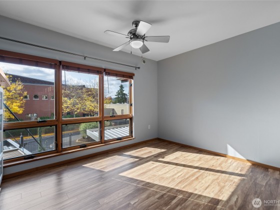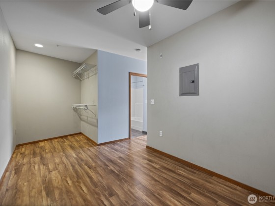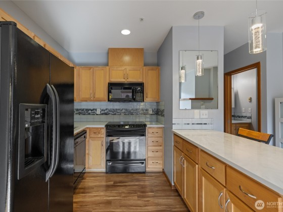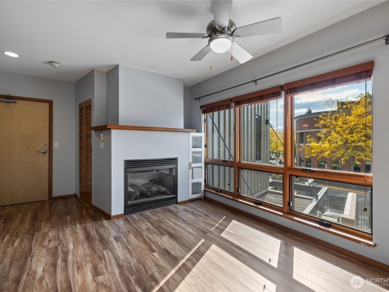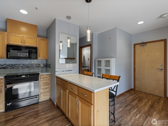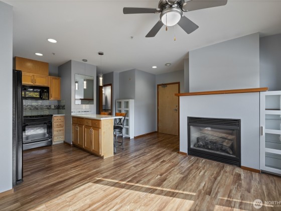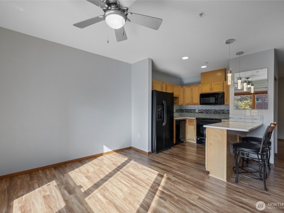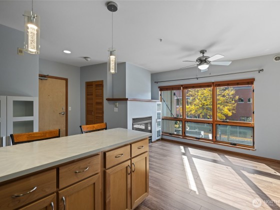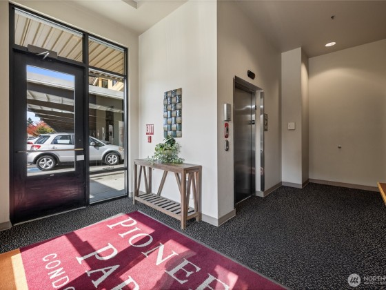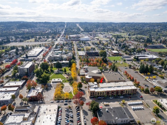 Discover urban living at its finest in this fully remodeled 1-bedroom, 1-bath studio located in the heart of Puyallup at the Pioneer Park Condominiums. Step inside to find a bright, open-concept layout featuring sleek engineered hardwood floors throughout. The modern open-concept kitchen boasts a convenient eating space with stunning quartz counter tops. The community offers exclusive access to a rooftop deck, perfect for relaxing or hosting friends with views of the park. Perfectly situated above a cozy coffee shop and steps away from vibrant Pioneer Park, this home offers unparalleled access to the best of the neighborhood. Enjoy the nearby library, lively farmers markets, and concerts in the park, all just outside your door!