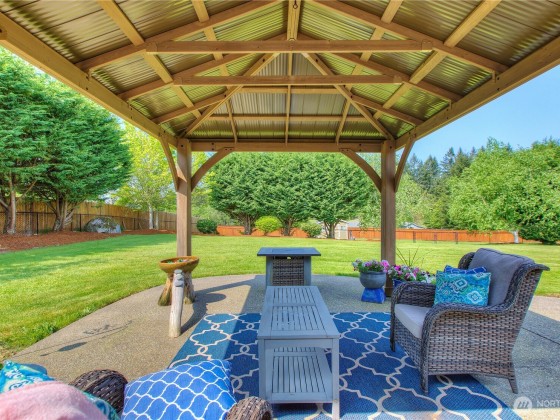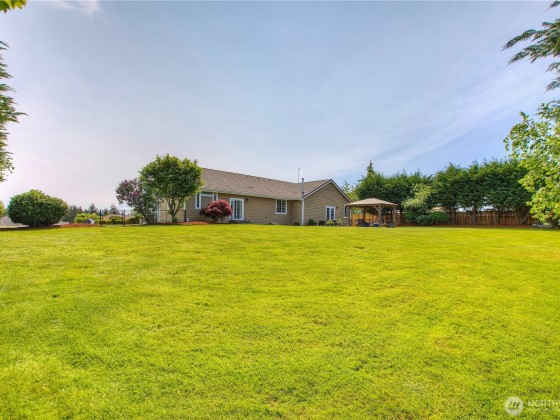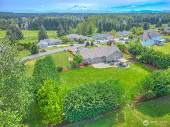 Experience peaceful, quiet, country-like living in the beautiful gated community of Lacamas Valley Ranches West! Custom-designed rambler sits on 1.16-acre lot surrounded by mature landscaping. 2285 SF, 3 bed & 2.5 bath, featuring soaring vaulted ceilings, hardwood floors, cozy gas fireplace PLUS freestanding wood stove. Open-concept kitchen includes center island, pantry & double ovens. Primary suite with soaking tub, custom walk-in closet & slider that opens to backyard oasis. Fully Fenced yard with beautiful water feature, gazebo & garden shed. Ample space for RV parking, future shop or even a pool! FRESH exterior paint, newer oversized H2O tank & Central AC. Located just 15 min to JBLM & close to restaurants, shopping, movies & schools.