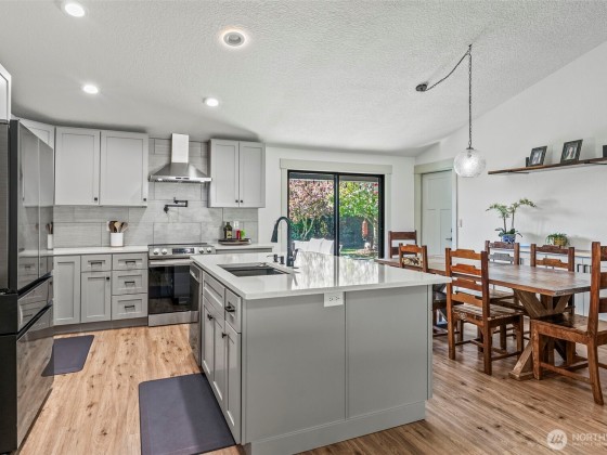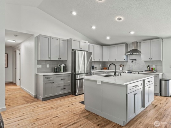 Beautiful one-level in ideal location w/stem-to-stern remodel - gorgeous, move-in ready gem w/all the bells & whistles! Stunning kitchen flanks the open concept dining & great room for easy living & fabulous entertaining; luxury vinyl throughout entire home, upgraded appliance package, new cabinetry, large island w/storage & quartz, dining area boasts built-in buffet plus slider to back patio & expansive yard that will surprise you! Fresh curb appeal inclusive of modern entry & door, exterior paint, landscaping, interior overhaul of paint, fixtures, tiled-in oversized shower, fully updated main bath, sleek & sexy kitchen, eye-catching fireplace & mantle plus HUGE garage w/storage. Get your steps in on the dike or bike to pickleball daily!