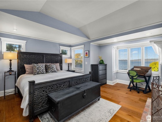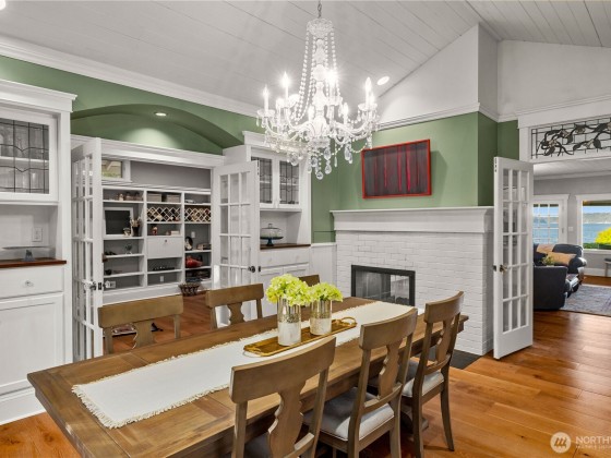 Settle onto the deep, covered veranda where time seems to slow—the lake shifting from silver to gold as the day fades, the soft rhythm of rain whispering against the eaves. Every corner of this 1920s Craftsman reflects a quiet reverence for its past, renewed through extensive recent updates. Wide-plank white oak floors, stained glass windows, French doors, and a double-sided fireplace lend warmth and grace, while the reimagined kitchen pairs timeless design with modern function. From the main floor primary suite, morning light spills across the lake, ushering in each day with serenity. Quietly positioned at the end of a tranquil lane, just steps from the water, this home beautifully captures a rare balance of history, beauty, and ease.
