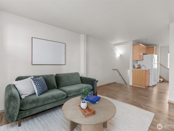 Incredible value and a fantastic condo alternative! This move-in-ready townhome offers the comfort of single-family living without the HOA fees. The main level features all-new LVP flooring, fresh interior paint, and an open layout that flows seamlessly to a private deck—perfect for morning coffee. The lower level includes a convenient half bath, extra storage, and access to a fully fenced backyard. Upstairs, two bright bedrooms with vaulted ceilings share a full bath. Enjoy the benefit of a newer roof, covered carport, and plenty of street parking nearby. Close to greenlake, bus lines, and quick access to downtown, this home offers easy living and great value.