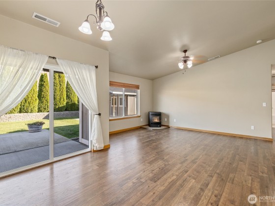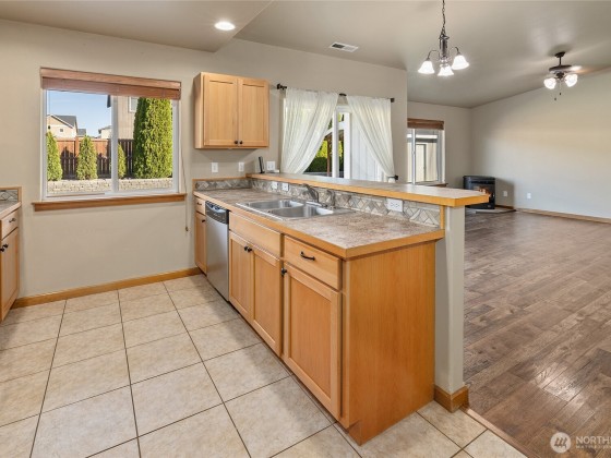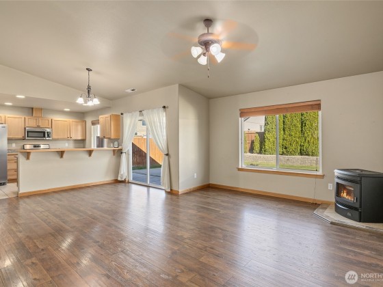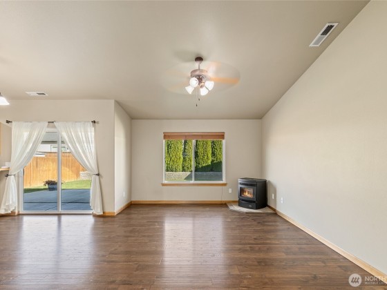 Move-in ready 1,330 SqFt rambler in Ellensburg's desirable Vista View Estates. This three bedroom, two bathroom home built on concrete slab features an open kitchen to the great room, efficient pellet stove heating, central air conditioning and abundant storage. Enjoy a peekaboo view of Mount Rainier from the front yard in this quiet established neighborhood. The beautifully cared for, fully fenced and landscaped backyard is perfect for outdoor living with an insulated storage shed PLUS sprinkler system for front and backyard. All appliances stay in the home, two vehicle garage and NO HOA fees! The south-end neighborhood has easy access to parks, schools, and services. This home is ready now for you to enjoy!
