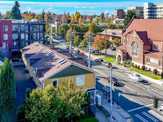 Live in the heart of Tacoma in this updated urban townhome w/ 2-car garage, perfectly situated on vibrant 6th Ave! Just steps from Wright Park, top-rated restaurants, cafes, and waterfront trails. This freshly painted 3-bed home features a split layout w/ private en-suite on the lower level. Upstairs, enjoy an open living space with skylights, granite kitchen counters, pantry, and cozy fireplace. The primary suite features a walk-in closet, bath, and stunning views. A third bedroom doubles as an office or flex space with its own half bath. Plenty of storage w/ huge walk in utility room and full size washer/dryer. Excellent walk score and city living at its best!