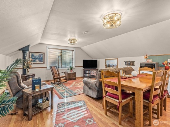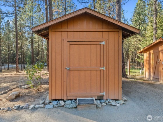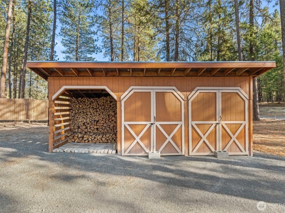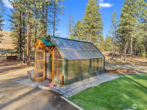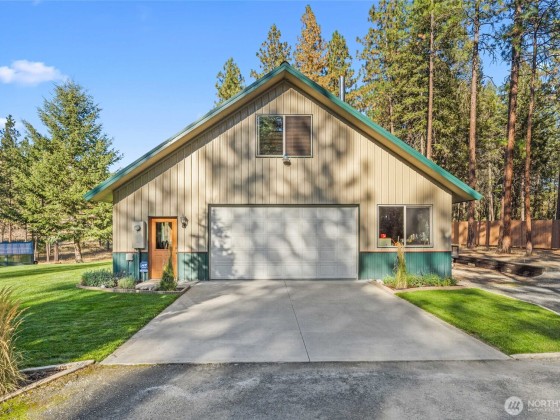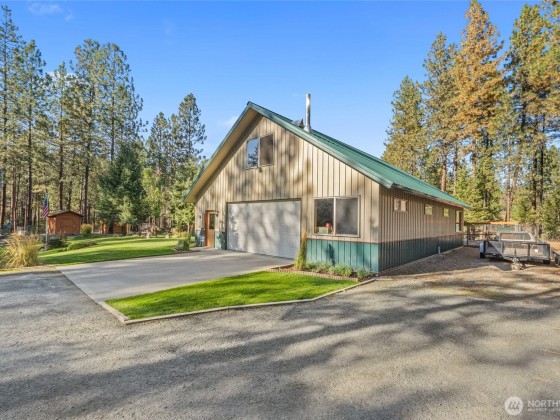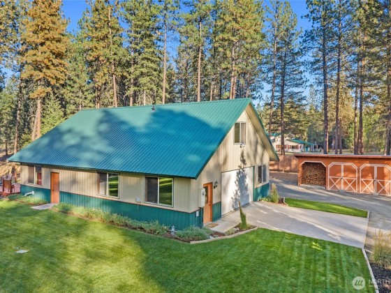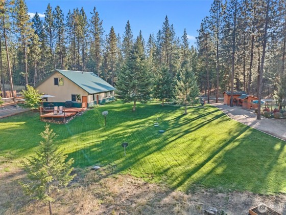 Pride of Ownership Shines in this Immaculate Shop Home on 10.38 Acres! This impeccably maintained property offers peaceful, park-like surroundings just minutes from Lake Roosevelt & endless recreation. Step inside to find a spacious 2-car garage w/extra workspace, separate mechanical room, & plenty of storage. The main level features 10-ft ceilings, pellet stove, w/d hookups, utility sink, bedroom area, & a roomy ¾ bath. Upstairs, you'll find a 2nd BR, another ¾ bath, and a kitchen w/a new electric stove, & a cozy living room w/a wood stove. Outside, enjoy a well kept chicken coop & fenced run, a 9 x 12 storage shed, 9 x 18 greenhouse, dedicated wood storage, & an expansive wood deck perfect for relaxing & taking in the serene grounds.