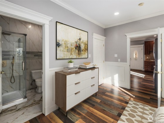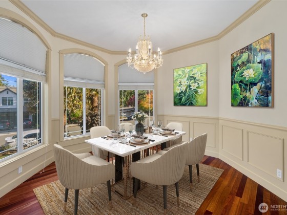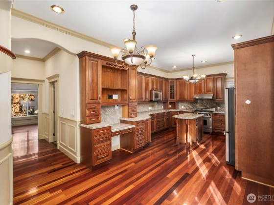 Beautiful custom-built home located in the convenient Eastgate, Bellevue! Mins to I-90 & 405, Shopping Center & highly rated schools. Step inside the home feel like solid-quality built, well finished throughout & timeless elegant! Home features 11 Bedrooms w/2 master-suites on main level & the other primary bedroom upstairs, it has 8.75 bathrooms in each bedroom and a very large 5,870 SqFt of living space. Total 3 kitchens on each floor & has separate entrance on each level. Other features included cherry hardwood floors, tile inlays, soaring 25’ ceilings, w/lots of architectural details. This home offers great opportunity & value as multi-generational living, rental income from 5 bedrooms in the fully finished basement.Come & check it out.