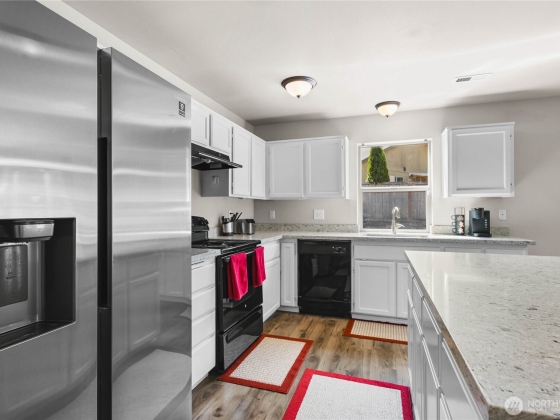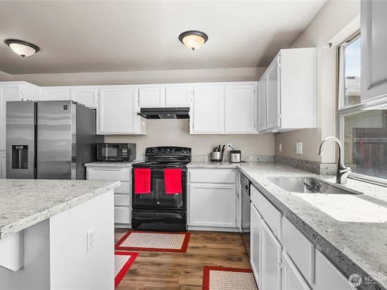 PRICE DROP! Located in a desirable gated community, this 2010-built home offers spacious, open-concept living perfect for entertaining. Enjoy fresh updates throughout, including new flooring in the kitchen, laundry, and bath, freshly painted cabinets, new carpet, and stunning quartz countertops. The kitchen comes fully equipped with all appliances included. Featuring 4 bedrooms plus a versatile bonus room or office on the main level, there’s plenty of space for work or play. Spacious primary bedroom and large guest bedrooms make the upstairs feel spacious. Step outside to the Flat, fully fenced backyard with a great private patio for relaxing or BBQs. Conveniently close to shopping, dining, schools, and just a short commute to JBLM.