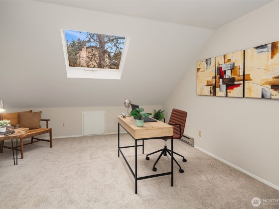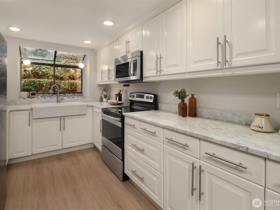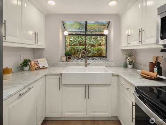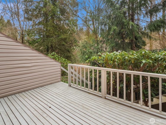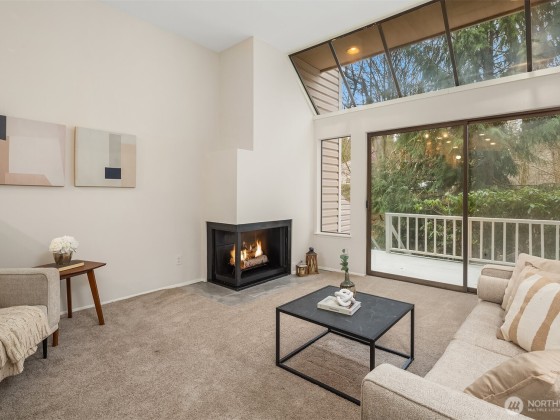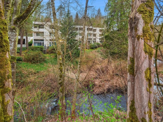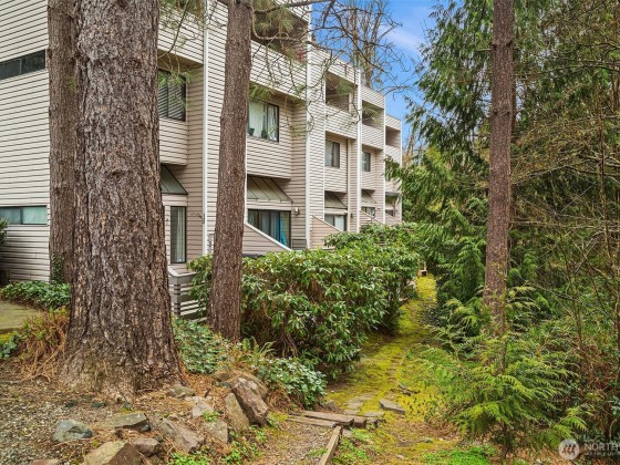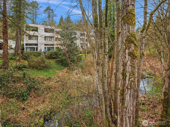 Peacefully nestled on a scenic creekside oasis between Lake Forest Park & Lake Ballinger, this elegantly upgraded 3-story stunner is a dramatic architectural masterpiece! Lavish Carrara marble kitchen with custom cabinets, farmhouse sink & built-in banquette dining opens to grand sunken living room with soaring ceiling, towering 2-sided fireplace, massive wall of windows & entertainment deck. Upper bonus room loft with skylights & covered view balcony opens to office/3rd bedroom. Spacious primary with ensuite & oversized closet. 2nd bedroom with atrium window bench. Move-in ready with fresh paint, new flooring & high-end appliances. Carport with HUGE storage room. Prime transit line location with rapid I-5 & Link light rail station access!