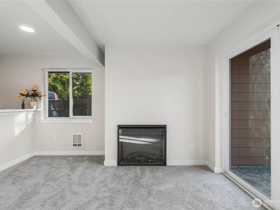 Beautifully rebuilt from the studs up, this brand new condominium offers modern comfort and quality craftsmanship throughout. Upgrades include new roof, siding, insulation, water heater, wall heaters, and electrical system. Interior features new LVP flooring, carpet, quartz countertops, soft-close cabinetry, and recessed lighting. Enjoy the ambiance of an electric fireplace and abundant natural light through a large sliding patio door that opens to a fenced private patio. Convenient in-unit washer/dryer, dedicated parking space, and a well-planned layout make this home an ideal low-maintenance living option. Conveniently located near Seattle, Renton, and SeaTac with easy access to I-5, I-405, and SR-599