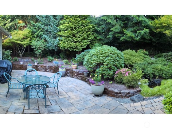 Serenity and privacy await at the end of a cul-de-sac at this single-level club home located in the highly sought after, idyllic gated community of Canterwood. The brightly lit living room with gas fireplace opens to the well-appointed kitchen. Two large bedrooms with en-suite bathrooms and a spacious den/office offer plenty of storage. Unique features include custom built-in cabinetry throughout; large 3-car garage (only club home w/ 3 full car spaces, built extra deep for more storage and EV charger ready); Invisible Fence® with flags; and mature, Japanese-inspired landscaping with maintenance included in the HOA dues. Recent upgrades: SS kitchen appliances (2023), 25-year roof (2024), heat pump (2022), and extensive hardscaping (2022).